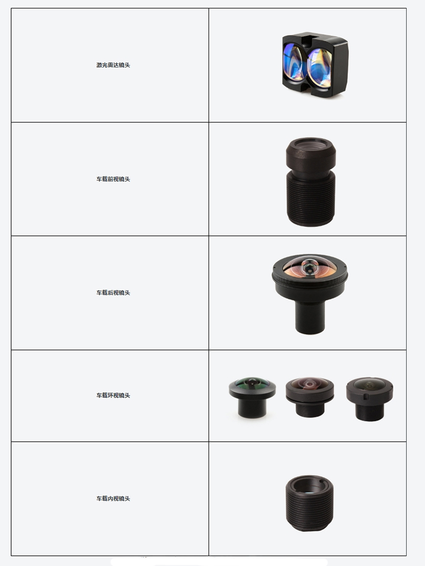 提供镜头设计和制造服务,为汽车ADAS系统、辅助安全系统和自动驾驶提供镜头解决方案。 产品介绍